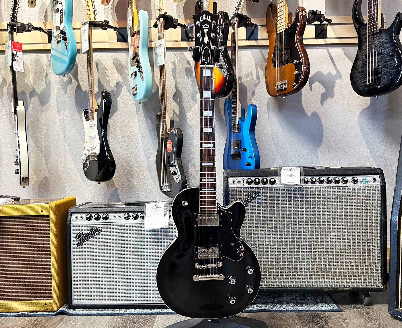 {"id":9175703585001,"title":"Guild Newark St. Bluesbird Electric Guitar in Jet Black","handle":"guild-newark-st-bluesbird-electric-guitar-in-gloss-black","description":"\u003cp\u003e\u003cmeta charset=\"UTF-8\"\u003e\u003cspan\u003eThe Bluesbird reflects Guild’s return to yet another historic solid body model. Originally released in 1970 as the solid body counterpart to the M-75 Aristocrat, the Bluesbird was subject to a few design changes over the decades. Today’s reissue features a carved maple top and maintains many of the aesthetic traits of the M-75 Bluesbird of the late 60s. Its lightweight chambered mahogany body allows for improved resonance and unparalleled comfort, making this guitar one of the lightest in its class. The Bluesbird features a 24 3\/4” scale, and fast-playing vintage C shaped neck. \u003c\/span\u003e\u003c\/p\u003e\n\u003cp\u003e\u003cspan\u003eWhile many of the Bluesbird’s specifications remain faithful to the original model, today’s updated version comes equipped with USA-made Seymour Duncan pickups, as well as a TonePros locking tune-o-matic bridge and stopbar tailpiece to offer the most versatile version of this guitar to date. Grover Sta-Tite tuning machines round out this ultimate package. \u003c\/span\u003e\u003c\/p\u003e\n\u003cp\u003e\u003cstrong\u003eCondition:\u003c\/strong\u003e Excellent, some light scratches on the back. Professionally set-up and plays great. \u003cbr\u003e\u003cbr\u003e\u003cstrong\u003eFeatures\u003c\/strong\u003e\u003cbr\u003e\u003c\/p\u003e\n\u003cul class=\"a-unordered-list a-vertical a-spacing-mini\"\u003e\n\u003cli class=\"a-spacing-mini\"\u003e\u003cspan class=\"a-list-item\"\u003eThe Bluesbird reflects Guild’s return to yet another historic solid body model \u003c\/span\u003e\u003c\/li\u003e\n\u003cli class=\"a-spacing-mini\"\u003e\u003cspan class=\"a-list-item\"\u003eOriginally released in 1970 as the solid body counterpart to the M-75 Aristocrat, the Bluesbird was subject to a few design changes over the decades \u003c\/span\u003e\u003c\/li\u003e\n\u003cli class=\"a-spacing-mini\"\u003e\u003cspan class=\"a-list-item\"\u003eToday’s reissue features a carved maple top and maintains many of the aesthetic traits of the M-75 Bluesbird of the late 60s \u003c\/span\u003e\u003c\/li\u003e\n\u003cli class=\"a-spacing-mini\"\u003e\u003cspan class=\"a-list-item\"\u003eThe lightweight chambered mahogany body allows for improved resonance and unparalleled comfort, making this guitar one of the lightest in its class \u003c\/span\u003e\u003c\/li\u003e\n\u003cli class=\"a-spacing-mini\"\u003e\u003cspan class=\"a-list-item\"\u003eThe Bluesbird features a 24 3\/4” scale, and fast-playing vintage C shaped neck \u003c\/span\u003e\u003c\/li\u003e\n\u003cli class=\"a-spacing-mini\"\u003e\u003cspan class=\"a-list-item\"\u003eNatural wood has unique spirit and varies greatly in color richness and wood grain; Product shipped may appear lighter or darker in color than the product shown here.\u003c\/span\u003e\u003c\/li\u003e\n\u003c\/ul\u003e\n\u003cp\u003e\u003cstrong\u003e\u003cspan class=\"a-list-item\"\u003eSpecifications\u003c\/span\u003e\u003c\/strong\u003e\u003c\/p\u003e\n\u003cul\u003e\n\u003cli\u003eMaple top - Black\u003c\/li\u003e\n\u003cli\u003eMahogany back and sides\u003c\/li\u003e\n\u003cli\u003eChambered Solid body\u003c\/li\u003e\n\u003cli\u003eIncludes Guild Deluxe Gig Bag\u003cbr\u003e\n\u003c\/li\u003e\n\u003cli\u003eMahogany neck\u003c\/li\u003e\n\u003cli\u003eRosewood fingerboard\u003c\/li\u003e\n\u003cli\u003eTone Pros NVR2 Locking Tune-O-Matic bridge\u003c\/li\u003e\n\u003cli\u003eSeymour Duncan USA JB SH-4 with nickel cover bridge pickup\u003c\/li\u003e\n\u003cli\u003eSeymour Duncan USA 59 Neck SH-1 with nickel cover neck pickup\u003c\/li\u003e\n\u003c\/ul\u003e","published_at":"2026-01-30T15:04:30-05:00","created_at":"2026-01-16T02:25:41-05:00","vendor":"Guild","type":"Electric","tags":["Black Electric Guitar","Bluesbird","Epiphone Les Paul","Gibson Les Paul","Gibson Les Pauls","Guild","Guild Electrics","Les Paul","Les Paul Standard","LP Style Guitars","reverbsync-condition:excellent","Single Cut Les Paul"],"price":59999,"price_min":59999,"price_max":59999,"available":true,"price_varies":false,"compare_at_price":null,"compare_at_price_min":0,"compare_at_price_max":0,"compare_at_price_varies":false,"variants":[{"id":50024672919785,"title":"Default Title","option1":"Default Title","option2":null,"option3":null,"sku":"GUILD-BB-JB","requires_shipping":true,"taxable":true,"featured_image":null,"available":true,"name":"Guild Newark St. Bluesbird Electric Guitar in Jet Black","public_title":null,"options":["Default Title"],"price":59999,"weight":9072,"compare_at_price":null,"inventory_quantity":1,"inventory_management":"shopify","inventory_policy":"deny","barcode":null,"requires_selling_plan":false,"selling_plan_allocations":[]}],"images":["\/\/megatonemusic.com\/cdn\/shop\/files\/Guild-Bluesbird-Electric-Guitar-Black-Image-1.jpg?v=1768548454","\/\/megatonemusic.com\/cdn\/shop\/files\/Guild-Bluesbird-Electric-Guitar-Black-Image-2.jpg?v=1768548454","\/\/megatonemusic.com\/cdn\/shop\/files\/Guild-Bluesbird-Electric-Guitar-Black-Image-3.jpg?v=1768548453","\/\/megatonemusic.com\/cdn\/shop\/files\/Guild-Bluesbird-Electric-Guitar-Black-Image-4.jpg?v=1768548453","\/\/megatonemusic.com\/cdn\/shop\/files\/Guild-Bluesbird-Electric-Guitar-Black-Image-14.jpg?v=1768549082","\/\/megatonemusic.com\/cdn\/shop\/files\/Guild-Bluesbird-Electric-Guitar-Black-Image-5.jpg?v=1768549082","\/\/megatonemusic.com\/cdn\/shop\/files\/Guild-Bluesbird-Electric-Guitar-Black-Image-6.jpg?v=1768549082","\/\/megatonemusic.com\/cdn\/shop\/files\/Guild-Bluesbird-Electric-Guitar-Black-Image-7.jpg?v=1768549082","\/\/megatonemusic.com\/cdn\/shop\/files\/Guild-Bluesbird-Electric-Guitar-Black-Image-8.jpg?v=1768549082","\/\/megatonemusic.com\/cdn\/shop\/files\/Guild-Bluesbird-Electric-Guitar-Black-Image-9.jpg?v=1768549082","\/\/megatonemusic.com\/cdn\/shop\