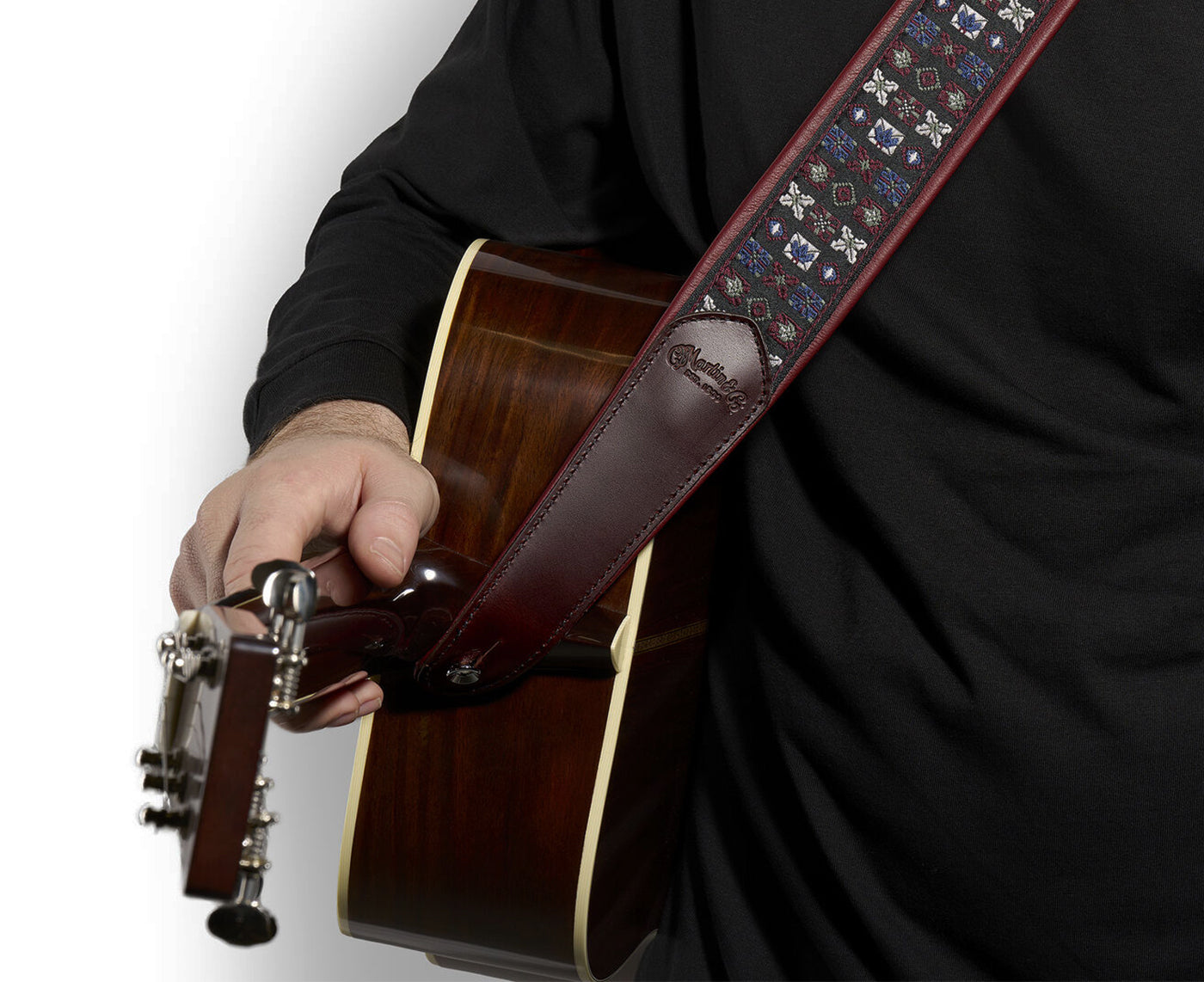 {"id":9230549844201,"title":"Martin Retro Jacquard Leather Guitar Strap","handle":"martin-retro-jacquard-leather-guitar-strap","description":"\u003cp\u003eAdd a touch of heritage to your setup with the Martin Retro Jacquard Leather Strap. This 2.25\" wide strap blends the richness of full-grain pull-up leather with an iconic jacquard pattern inspired by historic music festivals. Over time, the leather develops a beautiful patina that tells your story. Inside, a padded layer is wrapped in soft garment leather, delivering all-day comfort through long sets and late-night jams. It's a bold mix of classic design and modern craftsmanship—just like your music.\u003c\/p\u003e\n\u003ch3\u003eFeature\u003c\/h3\u003e\n\u003cul\u003e\n\u003cli\u003ePadded garment leather backing\u003c\/li\u003e\n\u003cli\u003eFull-grain pull-up leather exterior\u003c\/li\u003e\n\u003cli\u003eBurgundy leather with burgundy\/blue\/white jacquard\u003c\/li\u003e\n\u003cli\u003eAdjustable 48\"–57\"\u003c\/li\u003e\n\u003cli\u003e2.25\" wide\u003c\/li\u003e\n\u003c\/ul\u003e","published_at":"2026-03-20T01:59:52-04:00","created_at":"2026-03-20T01:56:31-04:00","vendor":"Martin","type":"Guitar Straps","tags":["18A0188","729789697521","Accessories","C.F. Martin","Custom Guitar Straps","Guitar Straps","Martin","Martin Guitars","Martin Retro Jacquard Leather Guitar Strap","Straps"],"price":7999,"price_min":7999,"price_max":7999,"available":true,"price_varies":false,"compare_at_price":null,"compare_at_price_min":0,"compare_at_price_max":0,"compare_at_price_varies":false,"variants":[{"id":50667346165993,"title":"Default Title","option1":"Default Title","option2":null,"option3":null,"sku":"18A0188","requires_shipping":true,"taxable":true,"featured_image":null,"available":true,"name":"Martin Retro Jacquard Leather Guitar Strap","public_title":null,"options":["Default Title"],"price":7999,"weight":340,"compare_at_price":null,"inventory_quantity":1,"inventory_management":"shopify","inventory_policy":"deny","barcode":"729789697521","requires_selling_plan":false,"selling_plan_allocations":[]}],"images":["\/\/megatonemusic.com\/cdn\/shop\/files\/Martin-Vintage-Jacquard-Leather-Guitar-Strap-Image-1.jpg?v=1773986206","\/\/megatonemusic.com\/cdn\/shop\/files\/Martin-Vintage-Jacquard-Leather-Guitar-Strap-Image-2.jpg?v=1773986207"],"featured_image":"\/\/megatonemusic.com\/cdn\/shop\/files\/Martin-Vintage-Jacquard-Leather-Guitar-Strap-Image-1.jpg?v=1773986206","options":["Title"],"media":[{"alt":"Martin Retro Jacquard Leather Guitar Strap - Megatone Music","id":39226894844137,"position":1,"preview_image":{"aspect_ratio":1.226,"height":1142,"width":1400,"src":"\/\/megatonemusic.com\/cdn\/shop\/files\/Martin-Vintage-Jacquard-Leather-Guitar-Strap-Image-1.jpg?v=1773986206"},"aspect_ratio":1.226,"height":1142,"media_type":"image","src":"\/\/megatonemusic.com\/cdn\/shop\/files\/Martin-Vintage-Jacquard-Leather-Guitar-Strap-Image-1.jpg?v=1773986206","width":1400},{"alt":"Martin Retro Jacquard Leather Guitar Strap - Megatone Music","id":39226894876905,"position":2,"preview_image":{"aspect_ratio":1.226,"height":1142,"width":1400,"src":"\/\/megatonemusic.com\/cdn\/shop\/files\/Martin-Vintage-Jacquard-Leather-Guitar-Strap-Image-2.jpg?v=1773986207"},"aspect_ratio":1.226,"height":1142,"media_type":"image","src":"\/\/megatonemusic.com\/cdn\/shop\/files\/Martin-Vintage-Jacquard-Leather-Guitar-Strap-Image-2.jpg?v=1773986207","width":1400}],"requires_selling_plan":false,"selling_plan_groups":[],"content":"\u003cp\u003eAdd a touch of heritage to your setup with the Martin Retro Jacquard Leather Strap. This 2.25\" wide strap blends the richness of full-grain pull-up leather with an iconic jacquard pattern inspired by historic music festivals. Over time, the leather develops a beautiful patina that tells your story. Inside, a padded layer is wrapped in soft garment leather, delivering all-day comfort through long sets and late-night jams. It's a bold mix of classic design and modern craftsmanship—just like your music.\u003c\/p\u003e\n\u003ch3\u003eFeature\u003c\/h3\u003e\n\u003cul\u003e\n\u003cli\u003ePadded garment leather backing\u003c\/li\u003e\n\u003cli\u003eFull-grain pull-up leather exterior\u003c\/li\u003e\n\u003cli\u003eBurgundy leather with burgundy\/blue\/white jacquard\u003c\/li\u003e\n\u003cli\u003eAdjustable 48\"–57\"\u003c\/li\u003e\n\u003cli\u003e2.25\" wide\u003c\/li\u003e\n\u003c\/ul\u003e"}