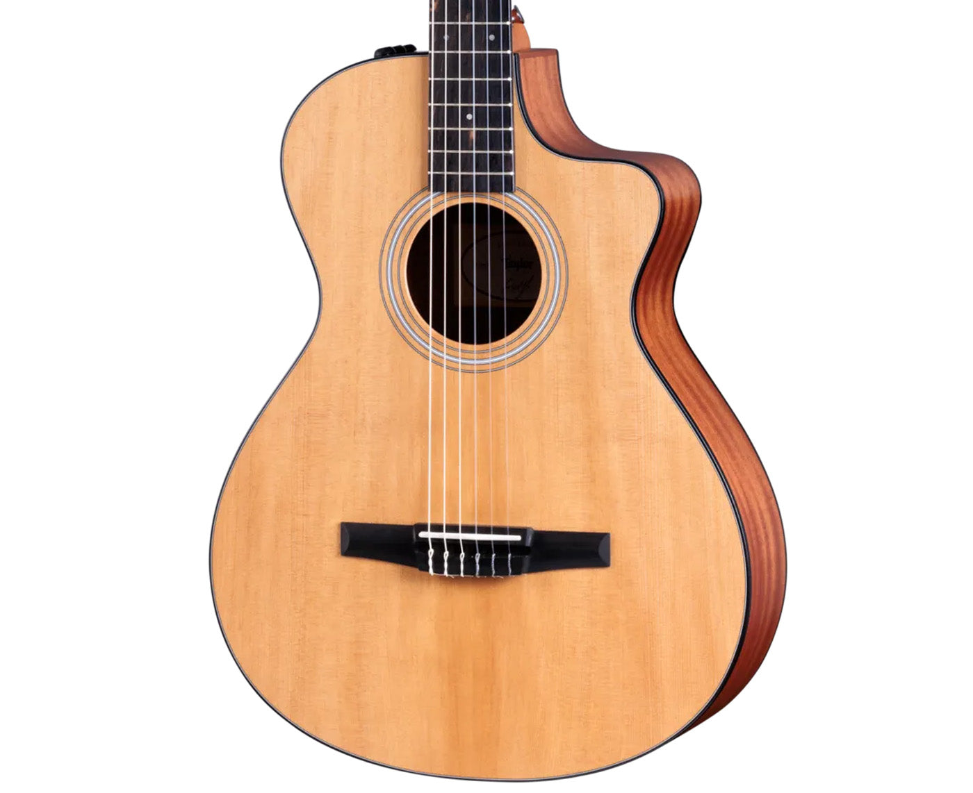 {"id":9185370145001,"title":"Taylor Guitars Academy 12e-N Nylon String Acoustic-Electric Guitar in Natural (Copy)","handle":"taylor-guitars-academy-12e-n-nylon-string-acoustic-electric-guitar-in-natural-copy","description":"\u003cp\u003e\u003cmeta charset=\"UTF-8\"\u003e\u003cspan\u003eThe 112ce-N is our first 100 Series nylon-string cutaway Grand Concert, blending the warm, snappy sound of nylon strings with a comfortable, compact body shape. It offers an outstanding value for players of all skill levels. Featuring a solid, torrefied spruce top paired with layered sapele back and sides, this acoustic-electric offers a clear, balanced voice ideal for fingerstyle players and light strumming. Its 12-fret neck and 1-7\/8-inch nut width (narrower than a traditional classical \u003c\/span\u003e\u003ca href=\"https:\/\/www.taylorguitars.com\/\" aria-label=\"guitar\"\u003eguitar\u003c\/a\u003e\u003cspan\u003e neck) make it easy to play, especially for those transitioning from steel-string guitars. \u003c\/span\u003e\u003c\/p\u003e\n\u003cp\u003e\u003cspan\u003eA specialized voicing architecture is designed to enhance the natural warmth and clarity of the nylon strings, providing a well-balanced and responsive tone. Equipped with onboard ES-N electronics, the 112ce-N offers reliable amplified sound for studio settings and stage performances. Its matte-finished body features black binding and a 3-ring rosette. The ebony fretboard is inlaid with 4mm Dots in Italian acrylic and the slotted peghead is outfitted with classical nickel tuners. This model comes in a soft gig bag. It’s a great option for players who crave the comfort of a small-bodied guitar, signature Taylor playability and rich nylon flavors at an accessible price point.\u003c\/span\u003e\u003c\/p\u003e\n\u003cp\u003e\u003cstrong\u003eFeatures\u003c\/strong\u003e\u003c\/p\u003e\n\u003cul class=\"eng\"\u003e\n\u003cli\u003eNylon-string model for a classical feel and sound\u003c\/li\u003e\n\u003cli\u003eSolid torrefied spruce top for warmth, depth and projection\u003c\/li\u003e\n\u003cli\u003eCompact, comfortable Grand Concert body\u003c\/li\u003e\n\u003cli\u003eFan-style internal bracing for a clear, responsive nylon-string voice\u003c\/li\u003e\n\u003cli\u003eIncludes ES-N pickup and ships in a soft gig bag\u003c\/li\u003e\n\u003c\/ul\u003e","published_at":"2026-01-29T20:13:29-05:00","created_at":"2026-01-29T19:55:16-05:00","vendor":"Taylor","type":"Acoustic-Electric Guitars","tags":["112ce-N","887766134091","Academy 12e-N","Acoustic Cutaway","Acoustic Electric Classical","Acoustic Guitars","Classical Guitar","Classical Guitars","Electric Classical Guitar","Nylon Classical Guitars","Nylon String Guitar","Taylor","Taylor Acoustic Guitars","Taylor Classical Guitar"],"price":79900,"price_min":79900,"price_max":79900,"available":true,"price_varies":false,"compare_at_price":null,"compare_at_price_min":0,"compare_at_price_max":0,"compare_at_price_varies":false,"variants":[{"id":50080807452905,"title":"Default Title","option1":"Default Title","option2":null,"option3":null,"sku":"112ce-N","requires_shipping":true,"taxable":true,"featured_image":null,"available":true,"name":"Taylor Guitars Academy 12e-N Nylon String Acoustic-Electric Guitar in Natural (Copy)","public_title":null,"options":["Default Title"],"price":79900,"weight":7711,"compare_at_price":null,"inventory_quantity":1,"inventory_management":"shopify","inventory_policy":"deny","barcode":"887766134091","requires_selling_plan":false,"selling_plan_allocations":[]}],"images":["\/\/megatonemusic.com\/cdn\/shop\/files\/Taylor-112ce-N-Nylon-String-Classical-Acoustic-Electric-Guitar-Image-1.jpg?v=1769735460","\/\/megatonemusic.com\/cdn\/shop\/files\/Taylor-112ce-N-Nylon-String-Classical-Acoustic-Electric-Guitar-Image-2.jpg?v=1769735460","\/\/megatonemusic.com\/cdn\/shop\/files\/Taylor-112ce-N-Nylon-String-Classical-Acoustic-Electric-Guitar-Image-3.jpg?v=1769735460","\/\/megatonemusic.com\/cdn\/shop\/files\/Taylor-112ce-N-Nylon-String-Classical-Acoustic-Electric-Guitar-Image-6.jpg?v=1769735576","\/\/megatonemusic.com\/cdn\/shop\/files\/Taylor-112ce-N-Nylon-String-Classical-Acoustic-Electric-Guitar-Image-4.jpg?v=1769735576","\/\/megatonemusic.com\/cdn\/shop\/files\/Taylor-112ce-N-Nylon-String-Classical-Acoustic-Electric-Guitar-Image-5.jpg?v=1769735576"],"featured_image":"\/\/megatonemusic.com\/cdn\/shop\/files\/Taylor-112ce-N-Nylon-String-Classical-Acoustic-Electric-Guitar-Image-1.jpg?v=1769735460","options":["Title"],"media":[{"alt":null,"id":38681039438057,"position":1,"preview_image":{"aspect_ratio":1.226,"height":1142,"width":1400,"src":"\/\/megatonemusic.com\/cdn\/shop\/files\/Taylor-112ce-N-Nylon-String-Classical-Acoustic-Electric-Guitar-Image-1.jpg?v=1769735460"},"aspect_ratio":1.226,"height":1142,"media_type":"image","src":"\/\/megatonemusic.com\/cdn\/shop\/files\/Taylor-112ce-N-Nylon-String-Classical-Acoustic-Electric-Guitar-Image-1.jpg?v=1769735460","width":1400},{"alt":null,"id":38681039470825,"position":2,"preview_image":{"aspect_ratio":1.226,"height":1142,"width":1400,"src":"\/\/megatonemusic.com\/cdn\/shop\/files\/Taylor-112ce-N-Nylon-String-Classical-Acoustic-Electric-Guitar-Image-2.jpg?v=1769735460"},"aspect_ratio":1.226,"height":1142,"media_type":"image","src":"\/\/megatonemusic.com\/cdn\/shop\/files\/Taylor-112ce-N-Nylon-String-Classical-Acoustic-Electric-Guitar-Image-2.jpg?v=1769735460","width":1400},{"alt":null,"id":38681039503593,"position":3,"preview_image":{"aspect_ratio":1.226,"height":1142,"width":1400,"src":"\/\/megatonemusic.com\/cdn\/shop\/files\/Taylor-112ce-N-Nylon-String-Classical-Acoustic-Electric-Guitar-Image-3.jpg?v=1769735460"},"aspect_ratio":1.226,"height":1142,"media_type":"image","src":"\/\/megatonemusic.com\/cdn\/shop\/files\/Taylor-112ce-N-Nylon-String-Classical-Acoustic-Electric-Guitar-Image-3.jpg?v=1769735460","width":1400},{"alt":null,"id":38681043894505,"position":4,"preview_image":{"aspect_ratio":1.226,"height":1142,"width":1400,"src":"\/\/megaton