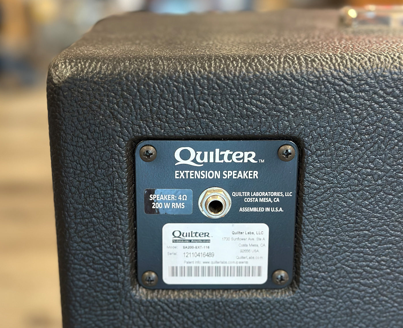 {"id":9054144725225,"title":"Quilter SA200-EXT-115 Steelaire 200W 1x15 Sealed Extension Speaker Cabinet","handle":"quilter-sa-200-ext-115-bass-cabinet","description":"\u003ch3 class=\"accordion-item_content-header\"\u003eHuge, powerful tone with 200W of handling.\u003c\/h3\u003e\n\u003cdiv class=\"accordion-item_content-copy truncated-text\" data-truncate=\"\" data-truncate-chars=\"200\" data-truncate-ellipsis=\"\" data-truncate-more-text=\"Show More\" data-truncate-less-text=\"Show Less\" data-truncate-buttons=\"\" data-truncate-orig-text=\"\u0026lt;div class=\u0026quot;accordion-item_content-text\u0026quot;\u0026gt;The Steelaire Extension from Quilter delivers the ideal 15 inch sealed-enclosure sound for demanding players. Weighing in at a mere 34 pounds, the reinforced 15-ply baltic birch is truly an epic and powerful tone. Designed by Pat Quilter and road tested by touring professionals, this is the perfect complement to the Steelaire combo and a powerful speaker in its own right in combination with your Steelaire rack-mount head.\u0026lt;br\u0026gt;\t\u0026lt;br\u0026gt;The all-important loudspeaker is the result of a lengthy collaboration between Pat Quilter and Eminence Speakers. Quilter started with Eminence's pro-audio cast-aluminum 15 inch frame for maximum rigidity and strength. To this the designers added a 3-in. aluminum voice coil, powerful neo magnet and hyperbolic cone to assure outstanding frequency response, power handling, and freedom from breakup. As a finishing touch, a 4-in. aluminum dome adds a hint of sweet metallic chime, resulting in a creamy full bodied tone with a citrus-y finish.\u0026lt;br\u0026gt;\u0026lt;br\u0026gt;The Steelaire Extension cabinet, constructed from 15-ply Baltic birch and covered with fabric-backed tolex, is the ultimate in rugged road gear while maintaining a classy boutique appearance. A padded, reinforced nylon cover is included to preserve its good looks for many years of service.\u0026lt;br\u0026gt;\u0026lt;br\u0026gt;The Steelaire Extension is intended to be the world's best amplifier, regardless of weight, for the steel player or any instrumentalist who needs the highest grade professional equipment. But with modern electronics and 15” neo speaker, the net weight of 34 lb. makes it easy to get on and off stage promptly without strain. The Quilter Steelaire Extension also comes with a speaker cable designed to handle the power of a Quilter Steelaire Combo or Steelaire Rackmount!\u0026lt;\/div\u0026gt;\n\u0026lt;p class=\u0026quot;accordion-item_content-text -bold\u0026quot;\u0026gt;\nCall or click to order today!\u0026lt;\/p\u0026gt;\" data-truncate-truncated-text=\"The Steelaire Extension from Quilter delivers the ideal 15 inch sealed-enclosure sound for demanding players. Weighing in at a mere 34 pounds, the reinforced 15-ply baltic birch is truly an epic and \u0026lt;span class='truncated-text-ellipsis'\u0026gt;\u0026lt;\/span\u0026gt;\" style=\"font-size: 16px; font-style: normal; font-variant-caps: normal; font-weight: 400; letter-spacing: normal; orphans: auto; text-align: start; text-indent: 0px; text-transform: none; white-space: normal; widows: auto; word-spacing: 0px; -webkit-text-stroke-width: 0px; text-decoration: none; box-sizing: inherit; margin: 0px 0px 14px; padding: 0px; color: rgb(85, 85, 85); font-family: Roboto, arial, sans-serif; background-color: rgb(254, 254, 254);\"\u003e\n\u003cdiv class=\"accordion-item_content-text\"\u003eThe Steelaire Extension from Quilter delivers the ideal 15 inch sealed-enclosure sound for demanding players. Weighing in at a mere 34 pounds, the reinforced 15-ply baltic birch is truly an epic and powerful tone. Designed by Pat Quilter and road tested by touring professionals, this is the perfect complement to the Steelaire combo and a powerful speaker in its own right in combination with your Steelaire rack-mount head.\u003cbr\u003e\u003cbr\u003eThe all-important loudspeaker is the result of a lengthy collaboration between Pat Quilter and Eminence Speakers. Quilter started with Eminence's pro-audio cast-aluminum 15 inch frame for maximum rigidity and strength. To this the designers added a 3-in. aluminum voice coil, powerful neo magnet and hyperbolic cone to assure outstanding frequency response, power handling, and freedom from breakup. As a finishing touch, a 4-in. aluminum dome adds a hint of sweet metallic chime, resulting in a creamy full bodied tone with a citrus-y finish.\u003cbr\u003e\u003cbr\u003eThe Steelaire Extension cabinet, constructed from 15-ply Baltic birch and covered with fabric-backed tolex, is the ultimate in rugged road gear while maintaining a classy boutique appearance. \u003c\/div\u003e\n\u003cdiv class=\"accordion-item_content-text\"\u003e\n\u003cbr\u003eThe Steelaire Extension is intended to be the world's best amplifier cab, regardless of weight, for the steel player or any instrumentalist who needs the highest grade professional equipment. But with modern electronics and 15” neo speaker, the net weight of 34 lb. makes it easy to get on and off stage promptly without strain. \u003c\/div\u003e\n\u003cdiv class=\"accordion-item_content-text\"\u003e\u003cbr\u003e\u003c\/div\u003e\n\u003cdiv class=\"accordion-item_content-text\"\u003e\n\u003cstrong\u003eCondition:\u003c\/strong\u003e Excellent, the cab looks great, sounds great.\u003c\/div\u003e\n\u003c\/div\u003e\n\u003cp\u003e\u003cstrong style=\"font-size: 0.875rem;\"\u003eFeatures\u003c\/strong\u003e\u003c\/p\u003e\n\u003cul\u003e\n\u003cli\u003ePower handling: 200W\u003c\/li\u003e\n\u003cli\u003e4 Ohm\u003c\/li\u003e\n\u003cli\u003eSpeaker: 1x15 Eminence custom\u003c\/li\u003e\n\u003cli\u003eDimensions: 20 x 23 x 11 in. (50.8 x 58.4 x 28 cm)\u003c\/li\u003e\n\u003cli\u003eWeight: 34 lb. (16kg)\u003cbr\u003e\n\u003c\/li\u003e\n\u003c\/ul\u003e\n\u003cul\u003e\u003c\/ul\u003e\n\u003cul\u003e\u003c\/ul\u003e","published_at":"2025-09-22T23:01:48-04:00","created_at":"2025-09-22T22:51:21-04:00","vendor":"Quilte